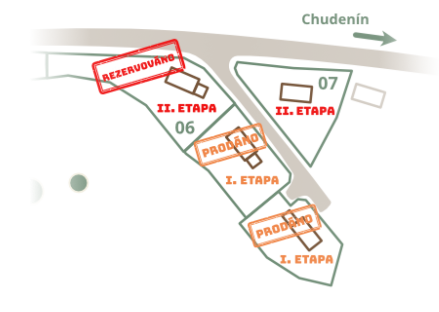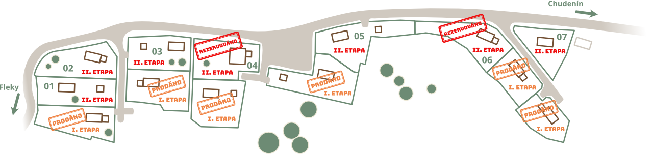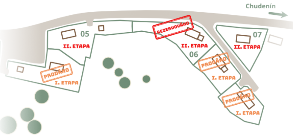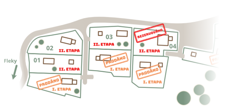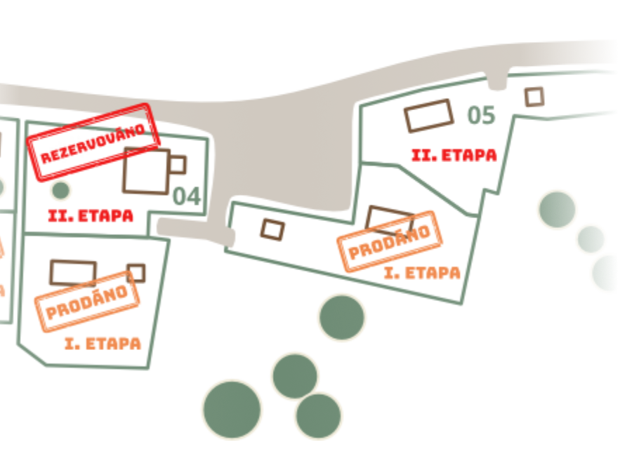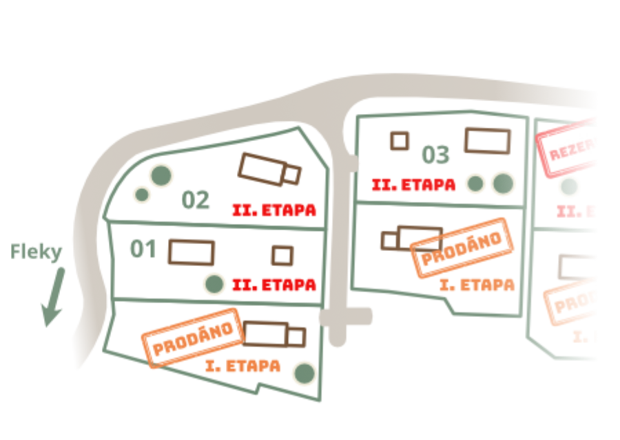 V současné době je na prodaných pozemcích postaven jeden dům (viz fotogalerie), na dalších třech pozemcích z I. etapy bude zahájena výstavba nejpozději v jarních měsících 2026.